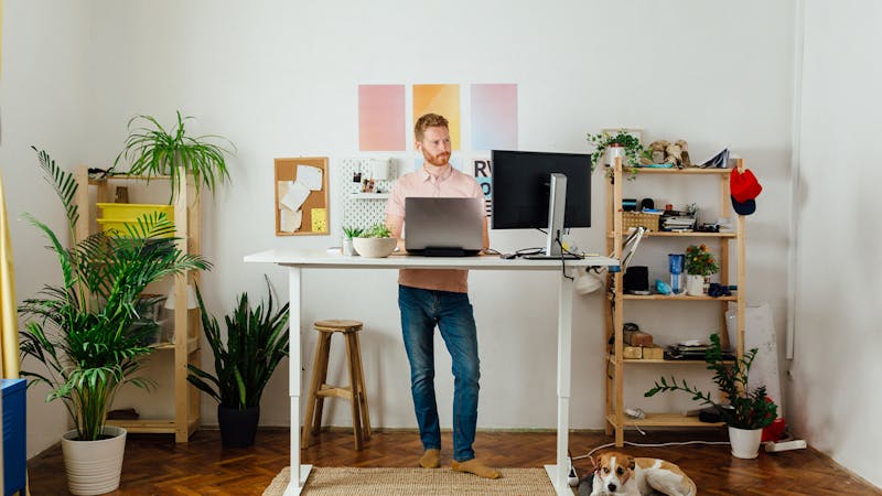 - Burn Calories While You Work – A supportive chair helps for long periods of sitting, but it’s time to get that stand-up desk. We burn 100-200 calories an hour standing. Compare that to 60-130 calories while sitting. So if you stand for 3-6 hours instead of sitting, that means you can burn more! Eviscerate those extra calories without sweating or physical labor. Stand up!