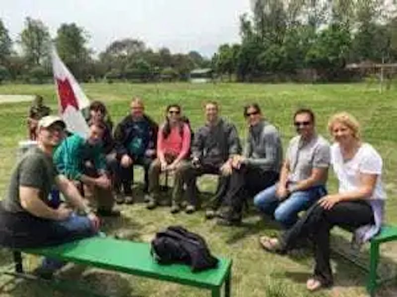 Medical mission work always brings surprises and this trip was no exception. As the team was walking through Kathmandu they were approached by local aid group. When they explained that they were a team of American physicians they were asked if they could provide some assistance to the injured people on the site. Without a second thought the team planted their Red Cross flag and began providing medical attention.
